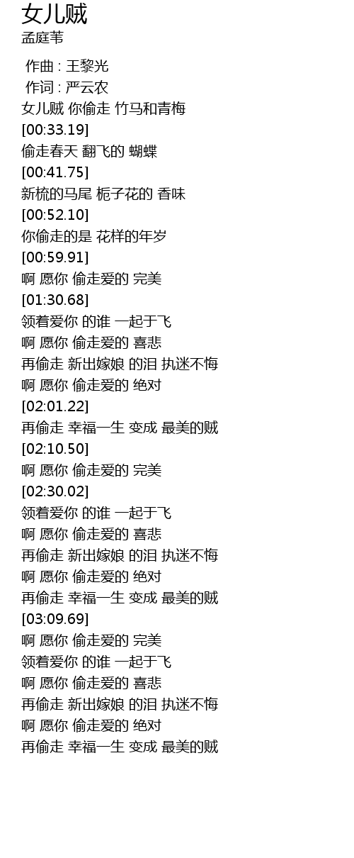 | [03:00.76] | 再偷走 幸福一生 变成 最美的贼 |