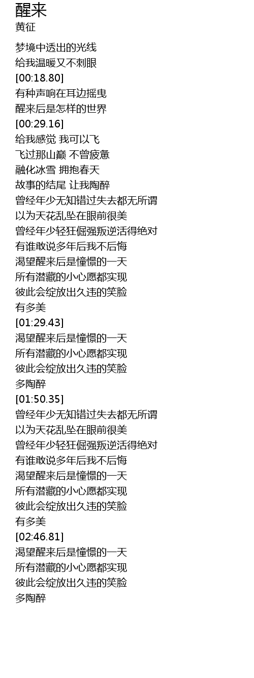 | [02:28.77] | 渴望醒来后是憧憬的一天 |