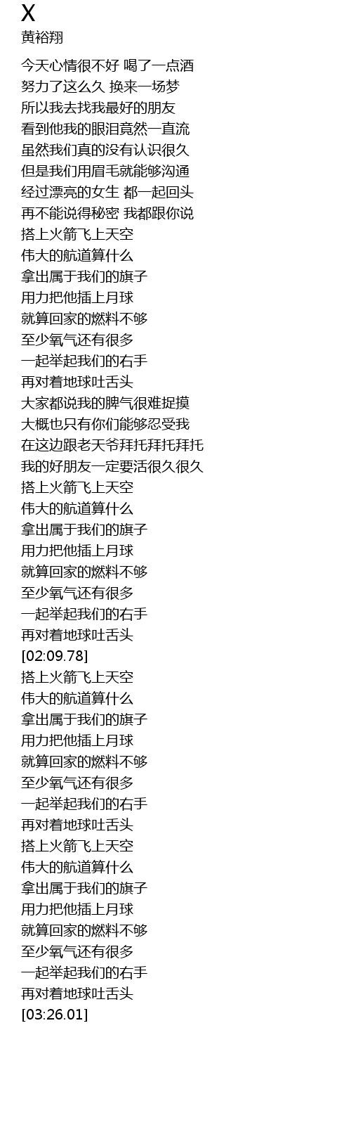 | [02:51.10] | dā shàng huǒ jiàn fēi shàng tiān kōng |
