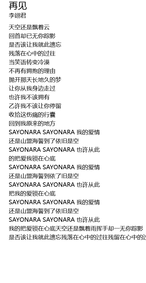 | [02:22.11] | SAYONARA SAYONARA wo de ai qing |