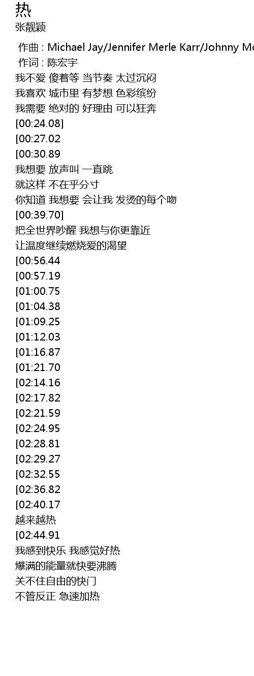 | [02:45.80] | 我感到快乐 我感觉好热 |
