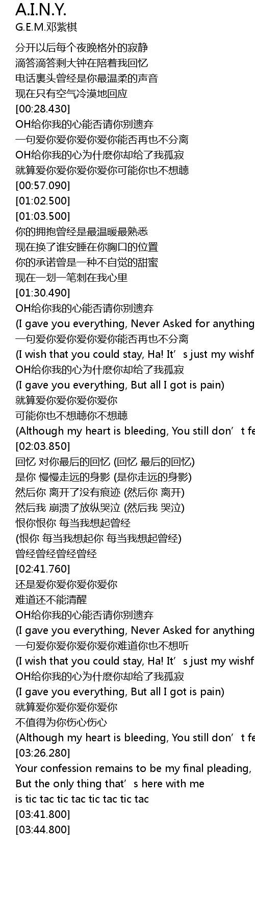 | [03:03.260] | yi ju ai ni ai ni ai ni ai ni nan dao ni ye bu xiang ting |