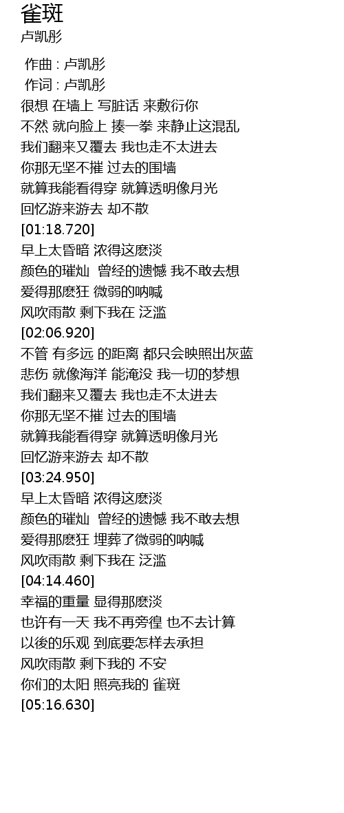 | [00:00.00] | 作曲 : 卢凯彤 |