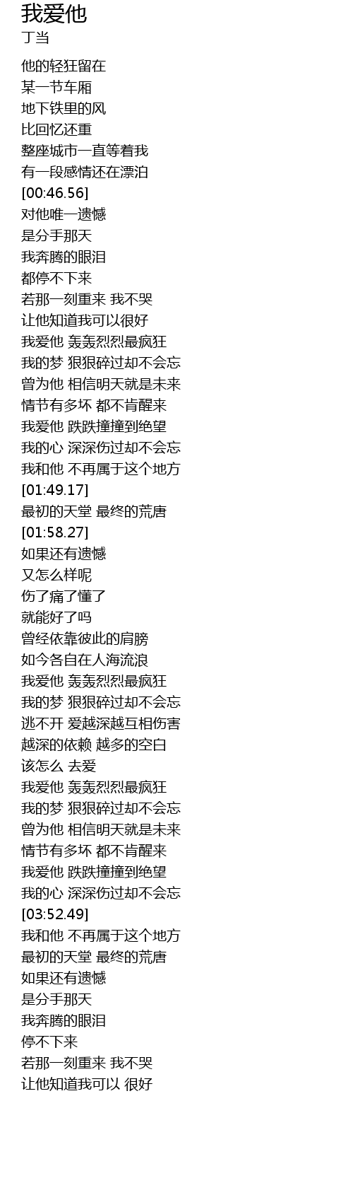 | [03:41.30] | 我爱他 跌跌撞撞到绝望 |