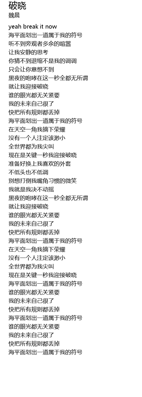 | [02:04.090] | 现在是关键一秒我迎接破晓 |