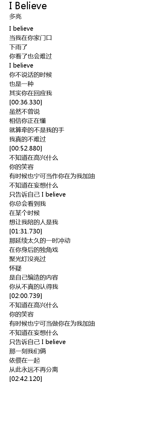 | [02:19.970] | 只告诉自己 I believe |
