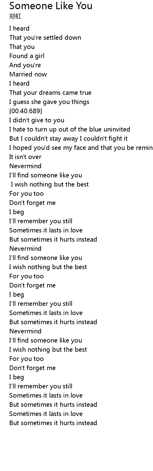 | [00:56.148] | I hoped you'd see my face and that you be remindedThat for me |