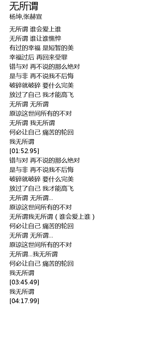 | [02:53.62] | wu suo wei wo wu suo wei shui hui ai shang shui |