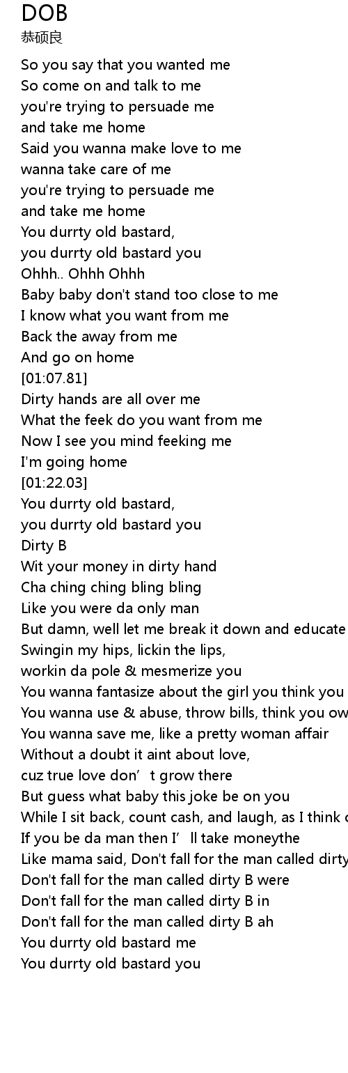| [02:21.42] | Don't fall for the man called dirty B ah |
