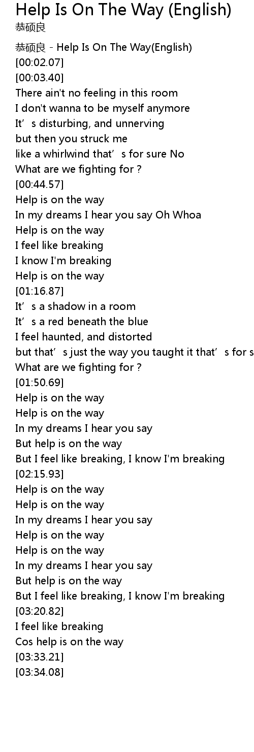| [00:01.42] | gong shuo liang Help Is On The Way English |