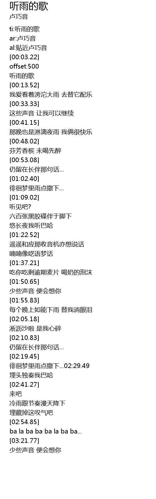 | [02:21.47]徘徊梦里雨点撒下...02:29.49] | 门缝外既已听不到熟悉脚步 |