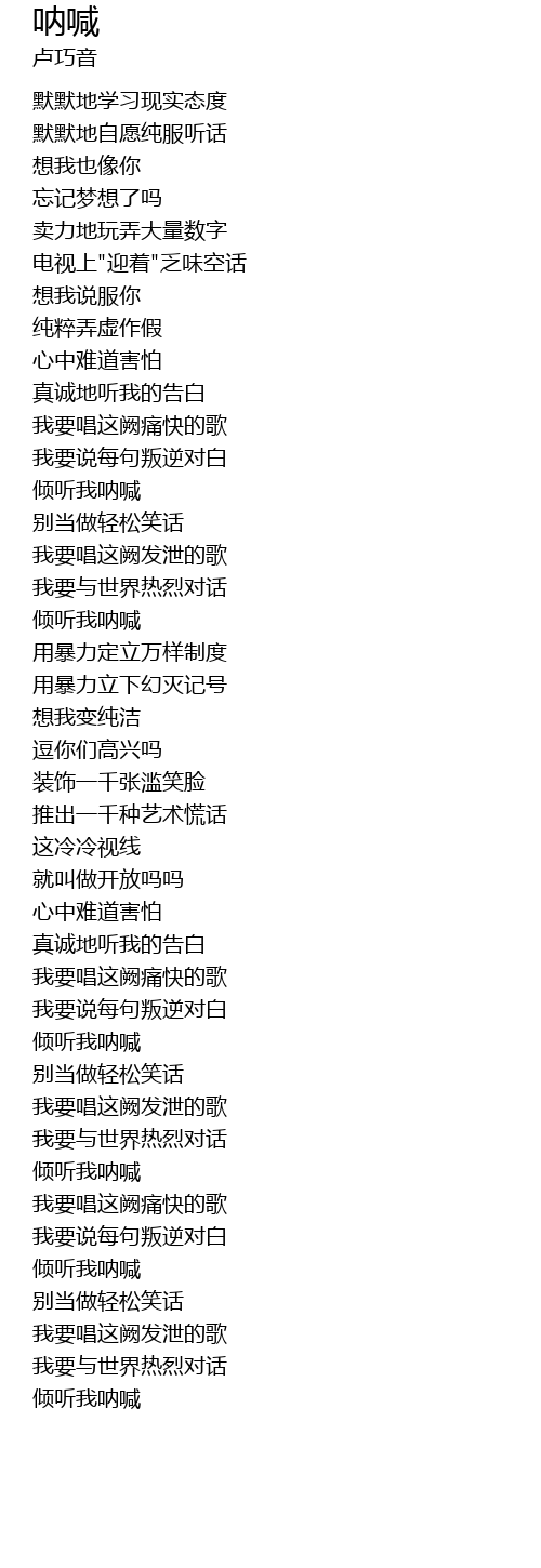 | [01:23.66] | qīng tīng wǒ nà hǎn |