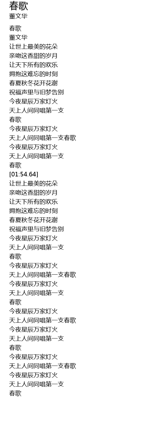 | [01:37.35] | 天上人间同唱第一支春歌 |