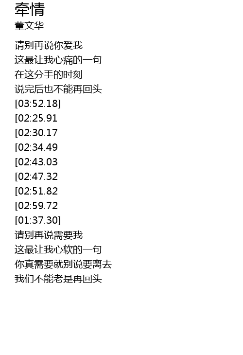 | [01:54.37] | qǐng bié zài shuō xū yào wǒ |