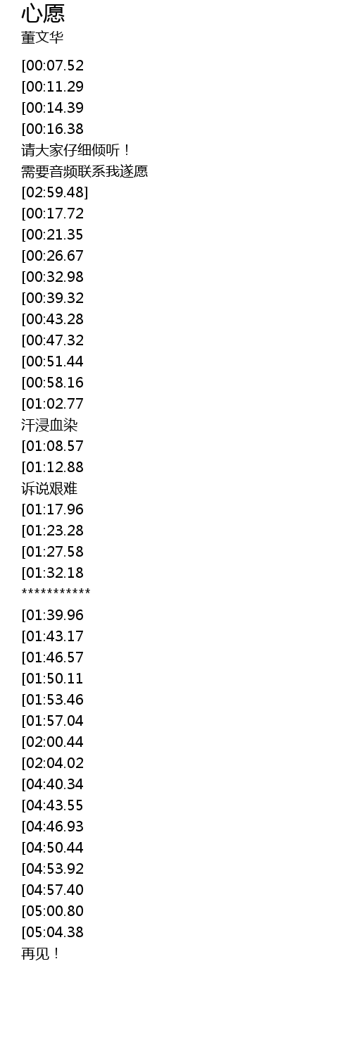 | [03:59.94][01:23.28] | 这是我中华的心愿 |