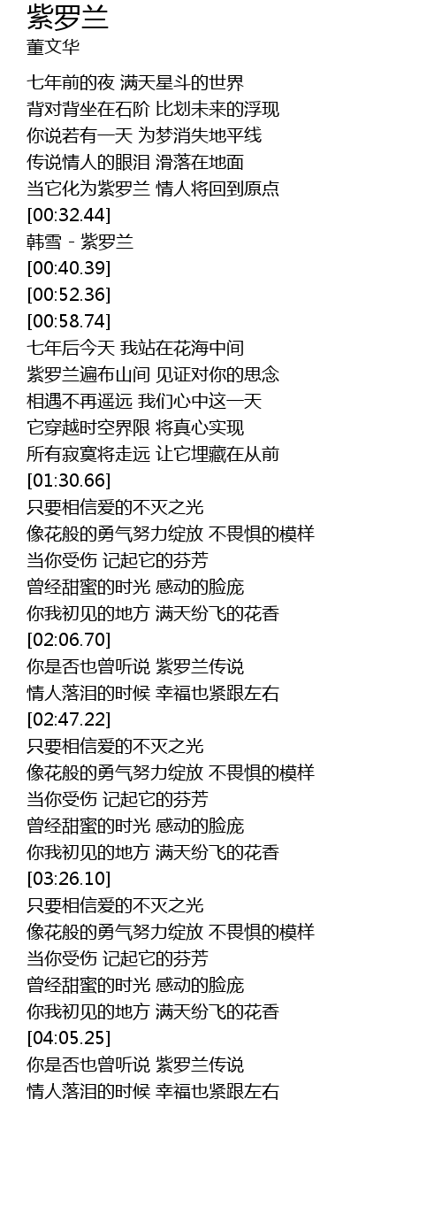 | [00:33.40] | 韩雪 - 紫罗兰 |