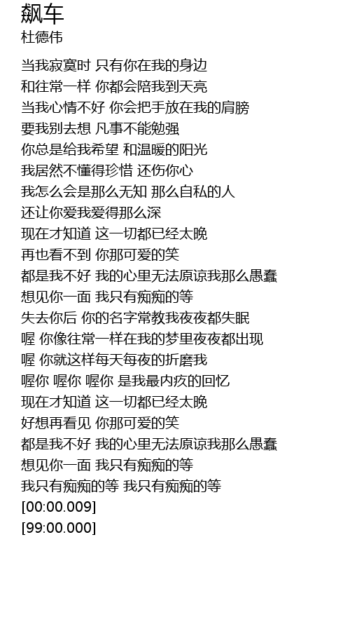 | [02:58.91] | 现在才知道 这一切都已经太晚 |