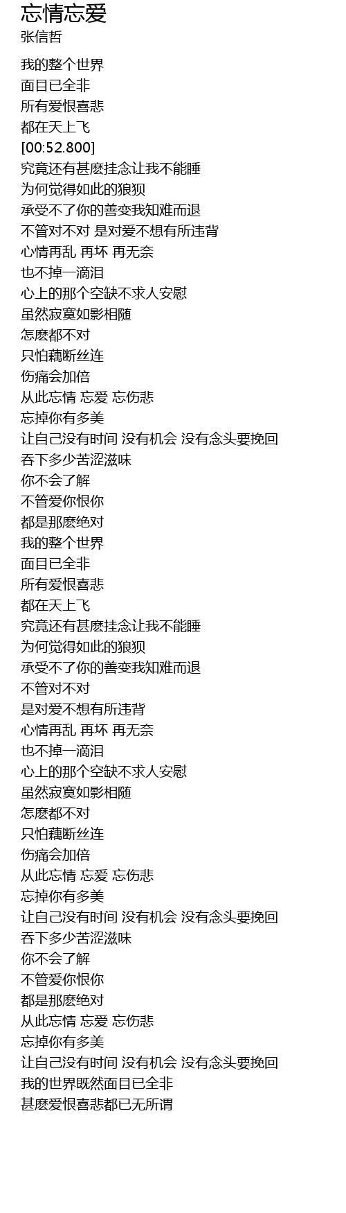 | [04:38.650] | 从此忘情 忘爱 忘伤悲 |