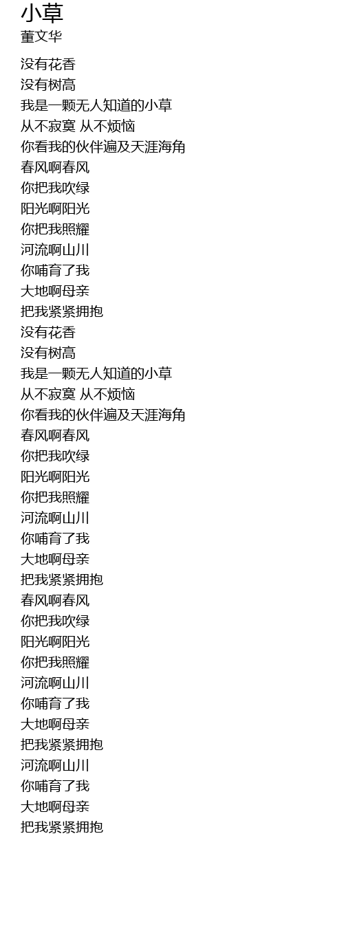 | [00:31.23] | 我是一颗无人知道的小草 |