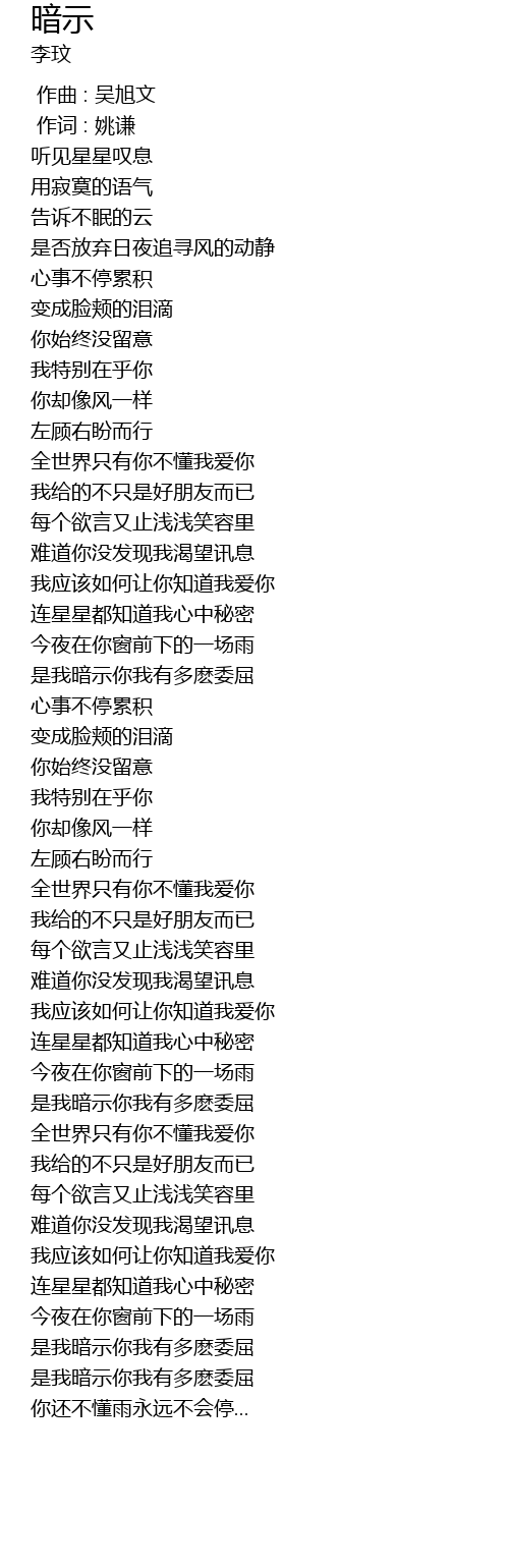 | [04:20.0] | 是我暗示你我有多麽委屈 |