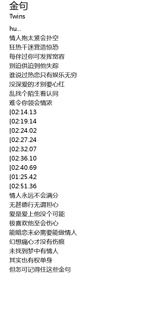 | [03:13.29][02:19.14][00:57.51] | 无伴侣是正因不想插队 |