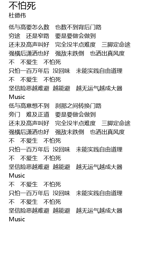 | [01:11.43] | 不 不爱生 不怕死 |