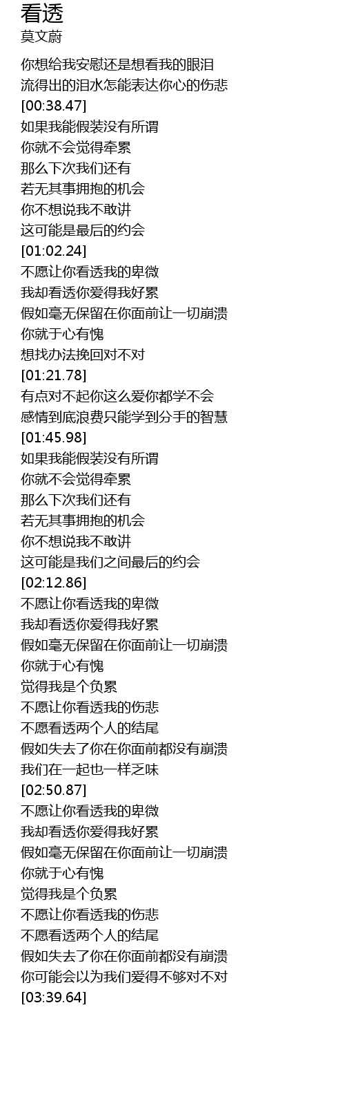 | [02:33.95] | 不愿看透两个人的结尾 |
