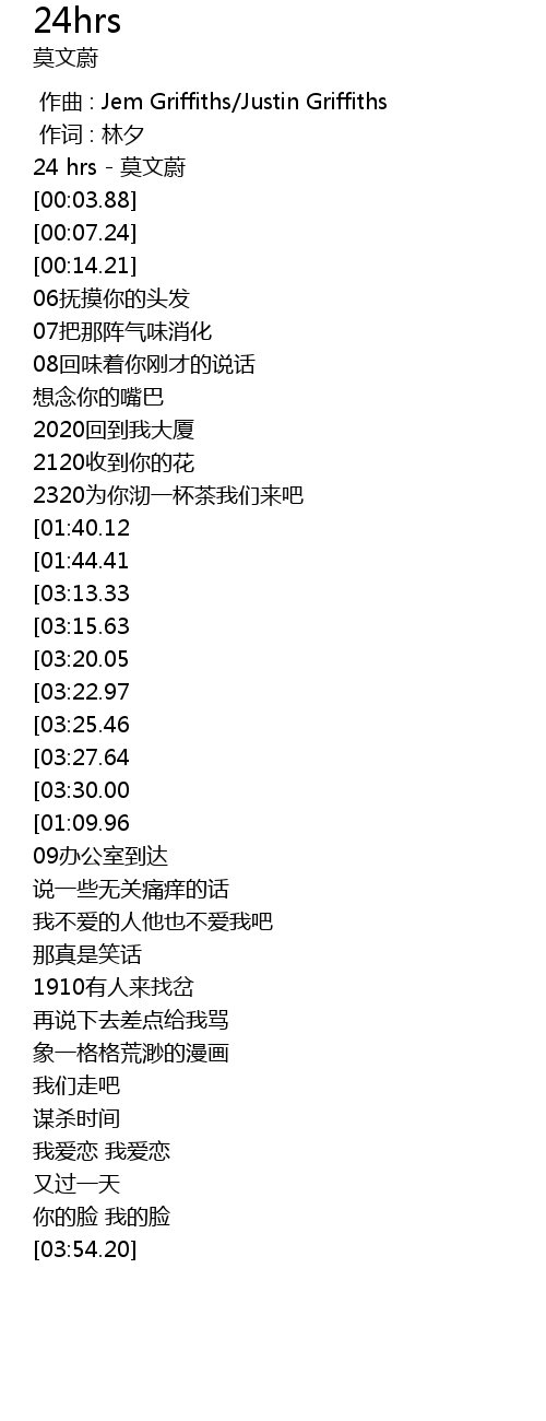 | [00:00.00] | 24 hrs mò wén wèi |