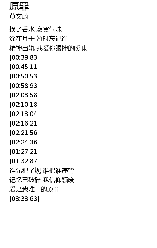 | [02:29.27][01:27.21] | 爱是我唯一的原罪 |