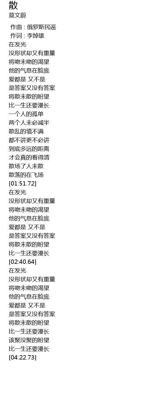 | [00:00.00] | zuò qǔ : é luó sī mín yáo |
