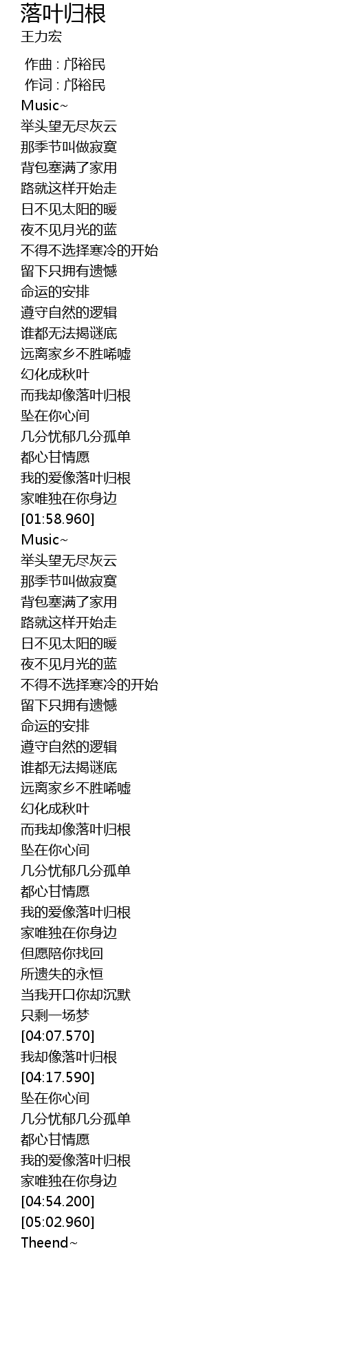 | [04:31.150] | 我的爱像落叶归根 |