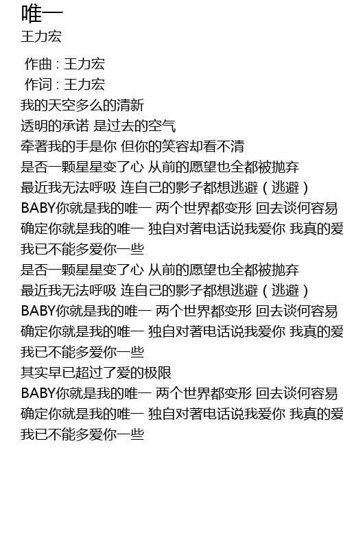 | [01:31.220] | 确定你就是我的唯一 独自对著电话说我爱你 我真的爱你BABY |