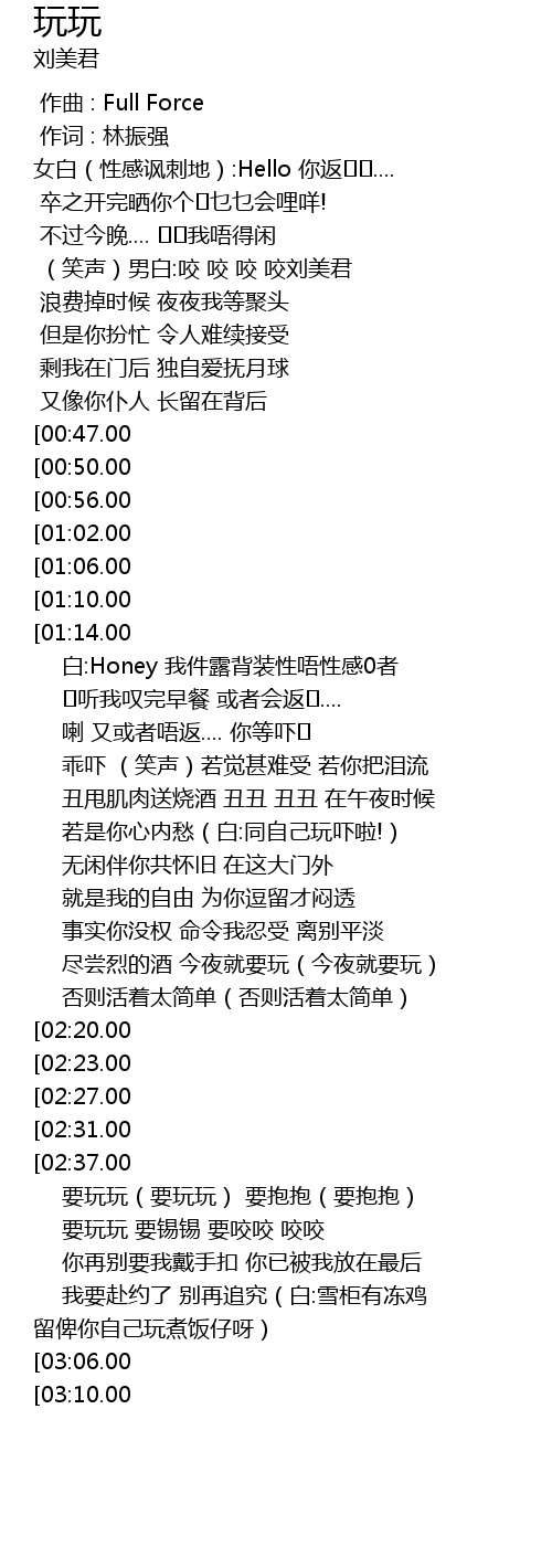 | [03:43.00][01:02.00] | 今夜就要玩玩 (今夜就要玩玩) |