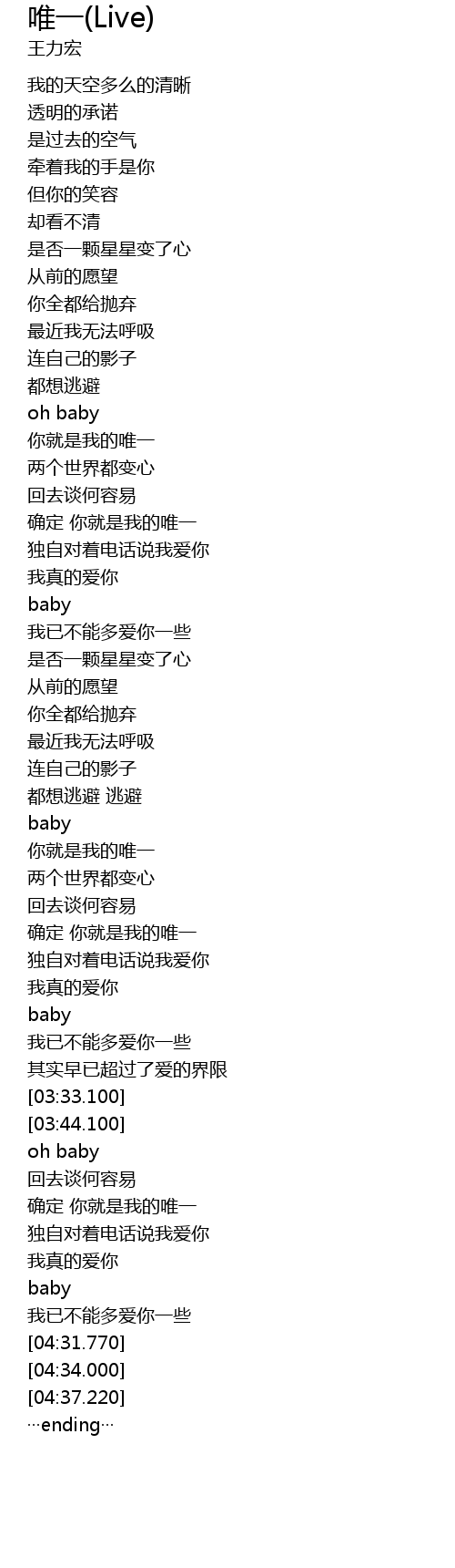 | [02:59.430] | 确定 你就是我的唯一 |