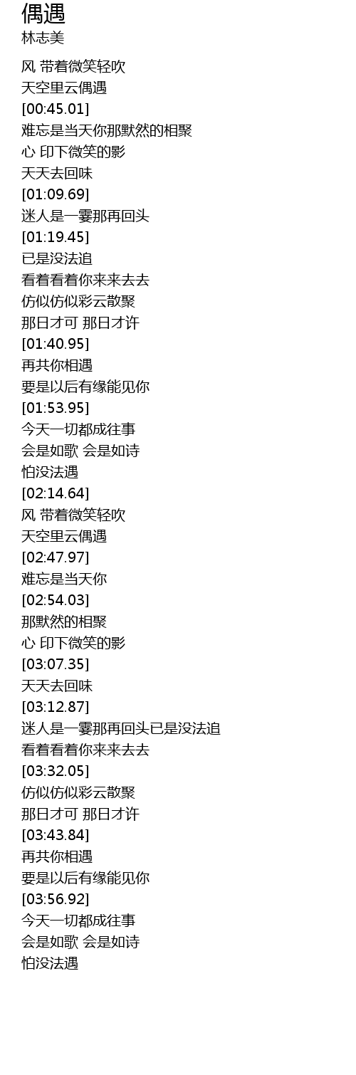 | [01:41.59] | zài gòng nǐ xiāng yù |