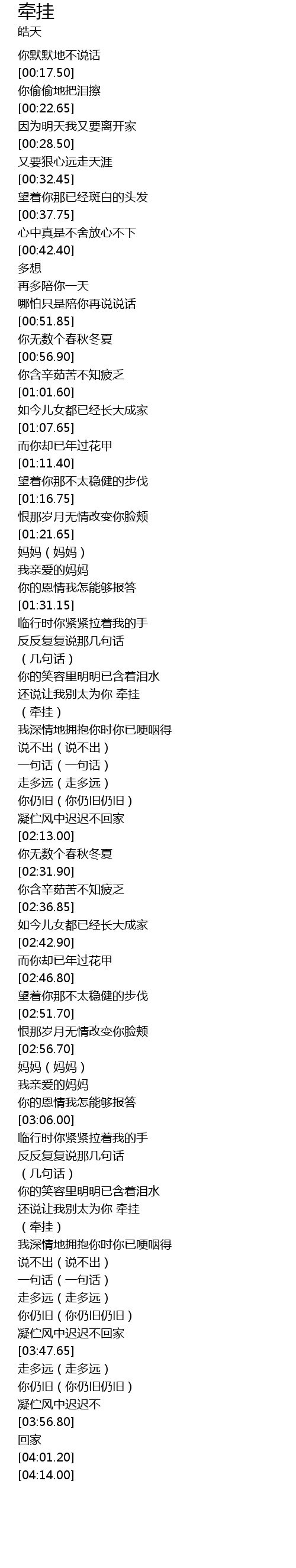 | [01:52.60] | (牵挂) |