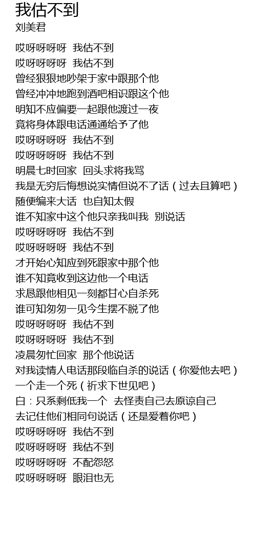 | [01:30] | 我是无穷后悔想说实情但说不了话(过去且算吧) |