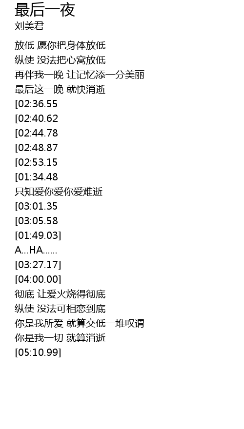 | [00:58.59] | 再伴我一晚 让记忆添一分美丽 |