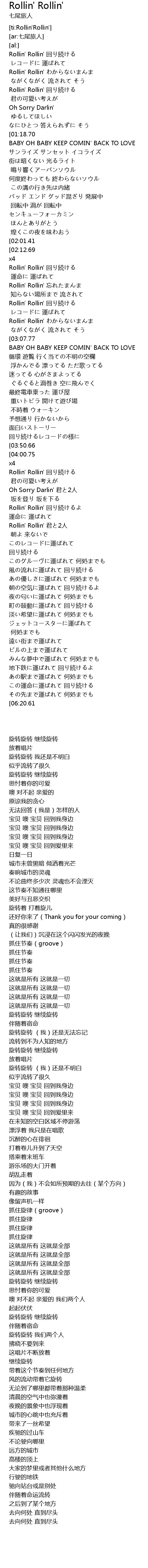 | [00:06.71] | Rollin' Rollin' 回り続ける |