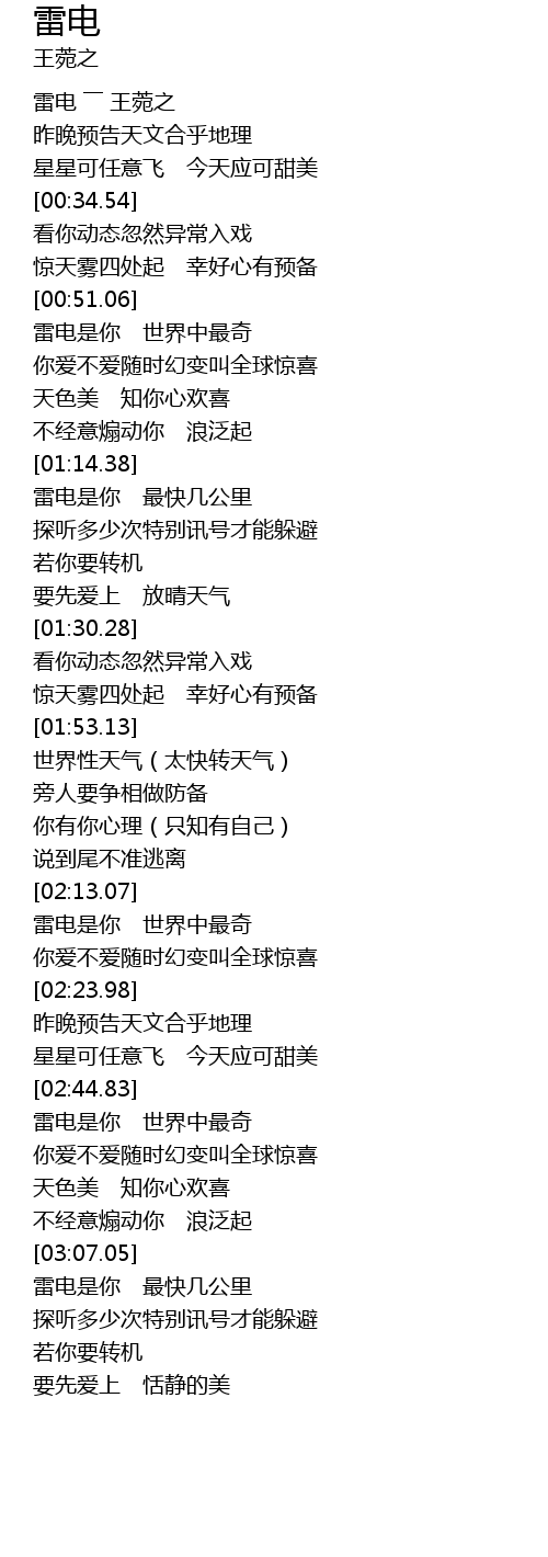 | [00:09.65] | 雷电 ―― 王菀之 |