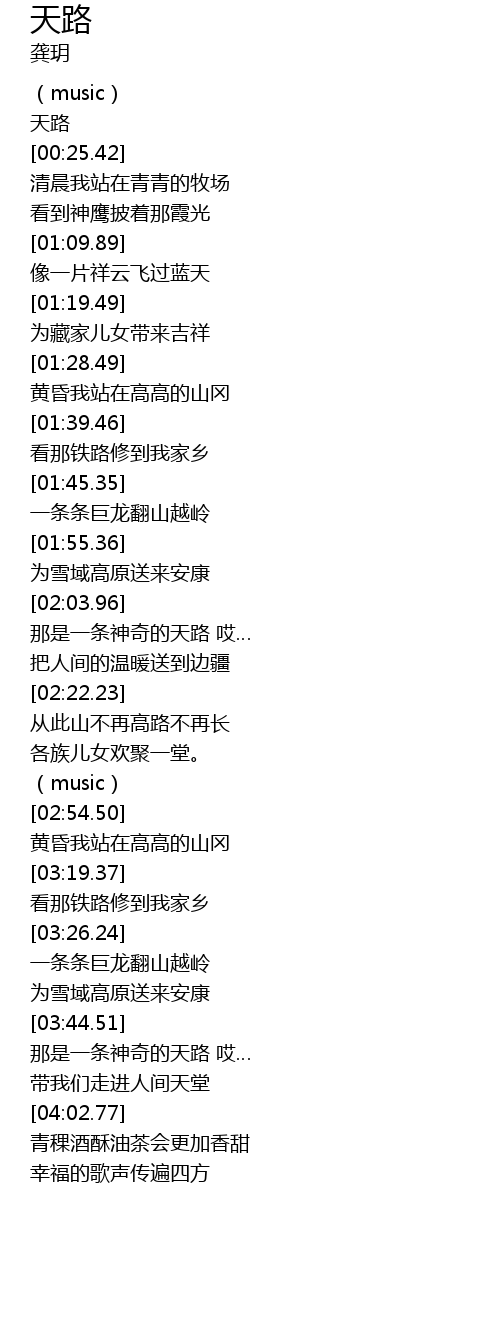 | [03:47.72] | 那是一条神奇的天路 哎… |