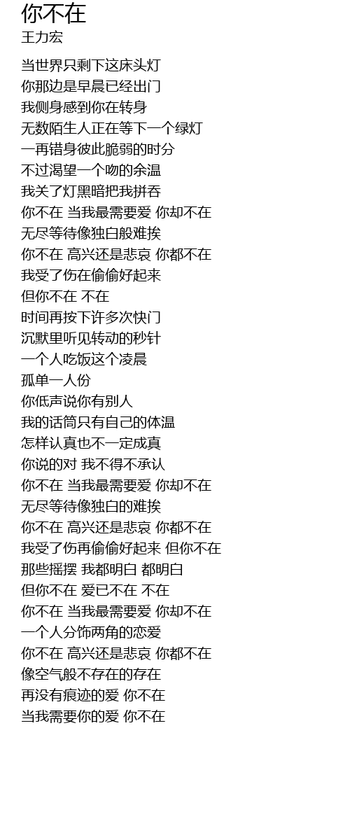 | [02:35.660] | 你不在 当我最需要爱 你却不在 |