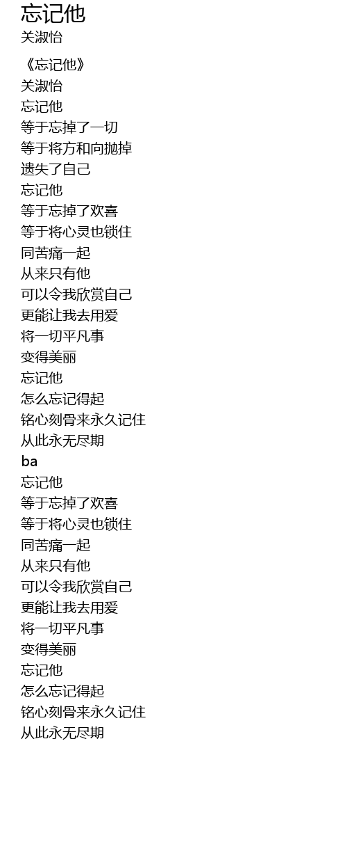 | [00:19.06] | 忘记他 |
