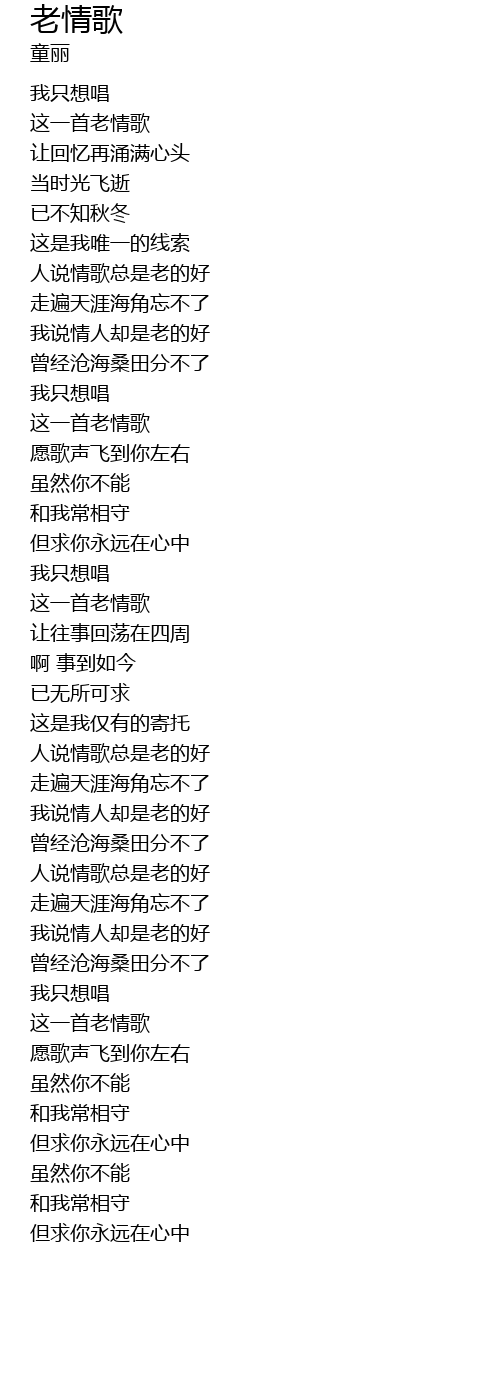 | [01:08.210] | rén shuō qíng gē zǒng shì lǎo de hǎo |
