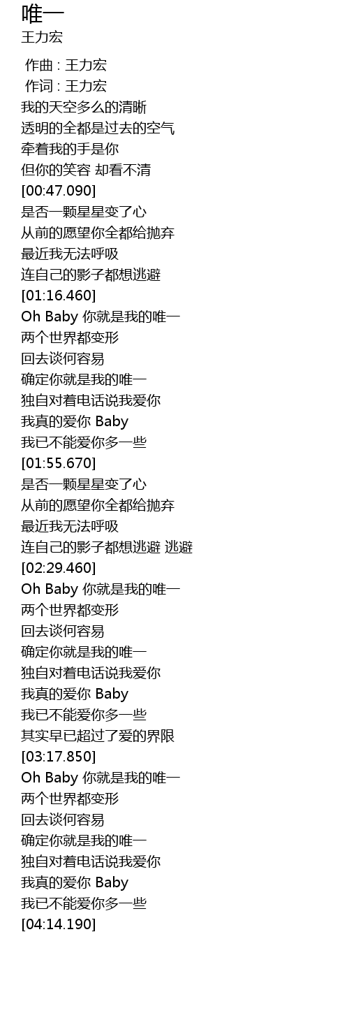 | [03:31.600] | Oh Baby 你就是我的唯一 |