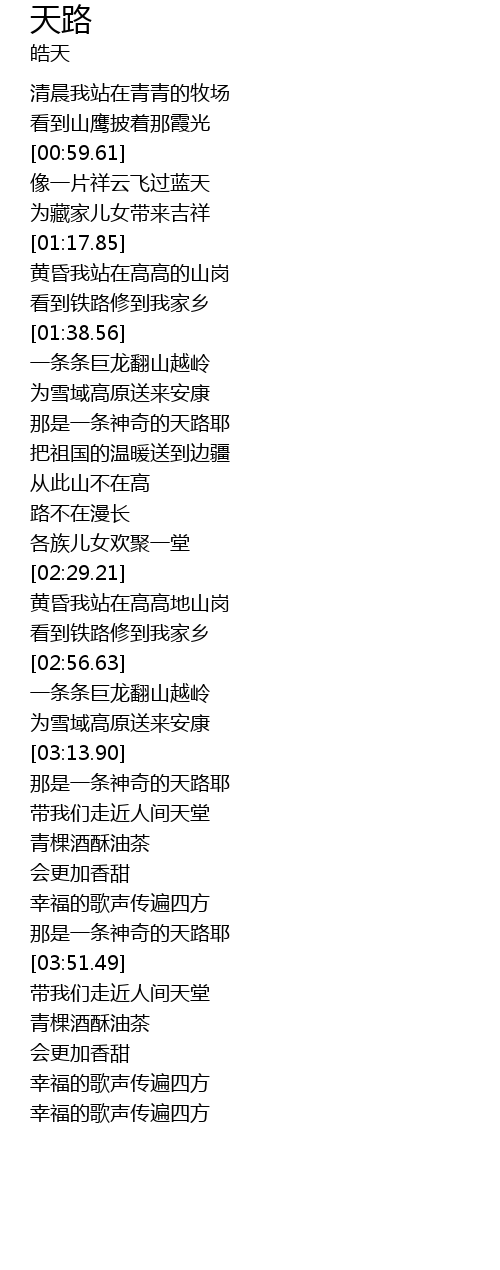 | [01:56.65] | 那是一条神奇的天路耶 |