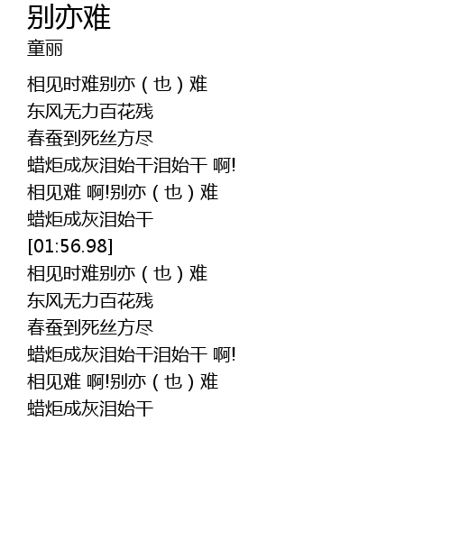 | [01:38.74] | 相见难 啊!别亦(也)难 |
