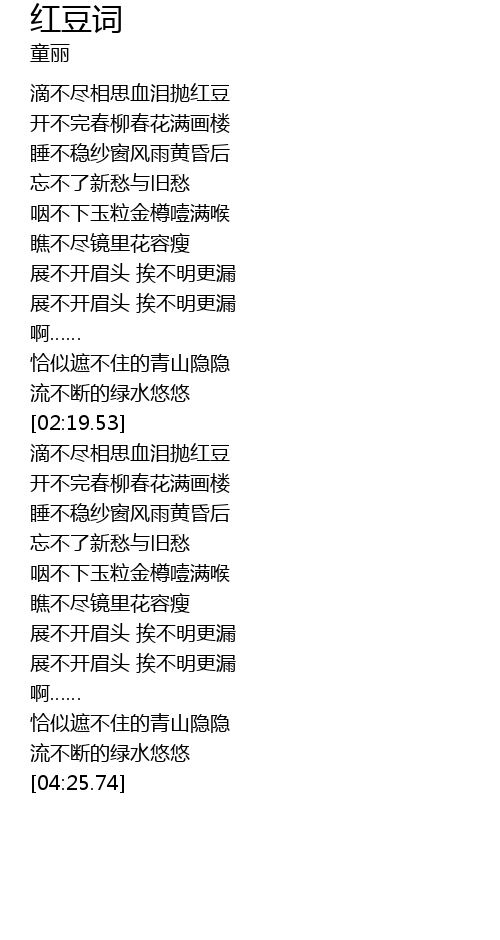 | [02:52.96] | 滴不尽相思血泪抛红豆 |