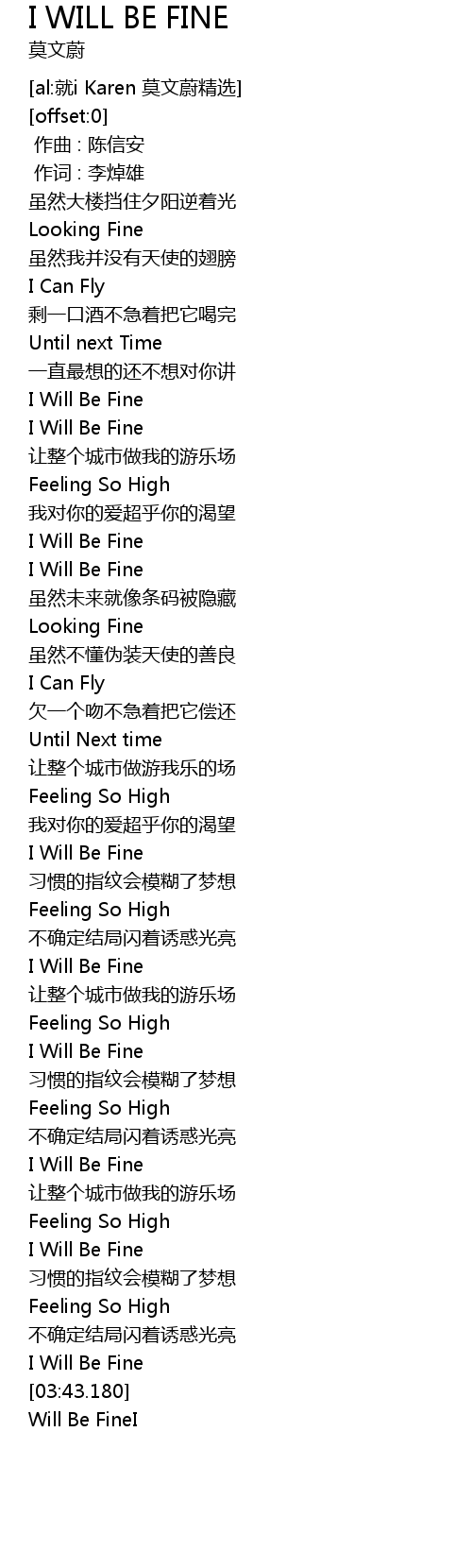 | [03:43.100] | I Will Be Fine |