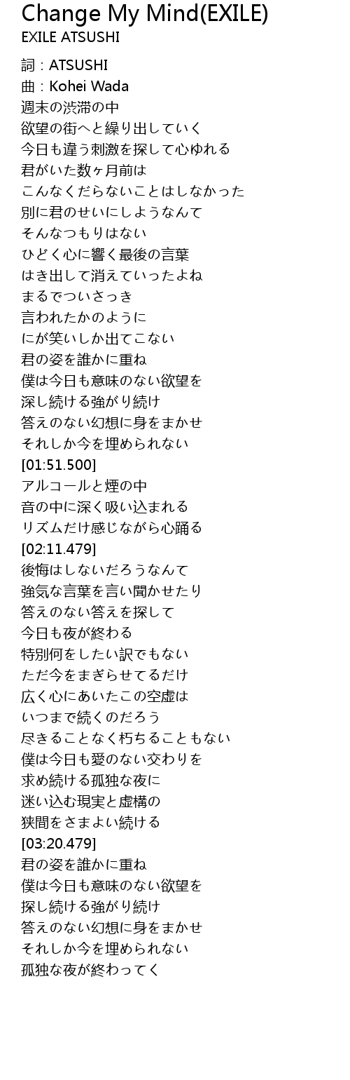 | Song | Change My Mind(EXILE) |